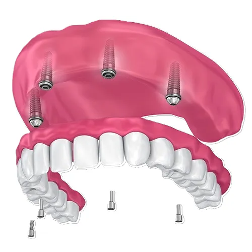 All-On-X Implants are a special way to replace missing teeth. Instead of getting one implant for each missing tooth, a few implants (usually 4 or more) are placed in your jaw to support a full set of new teeth. It's like building a strong bridge with solid support beams, making sure your new teeth are stable and won't move around.